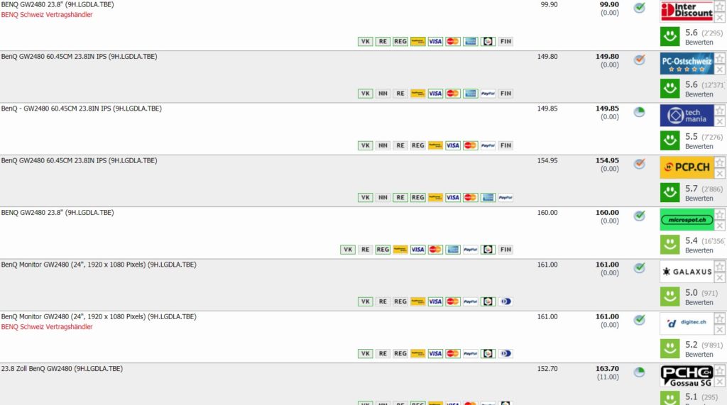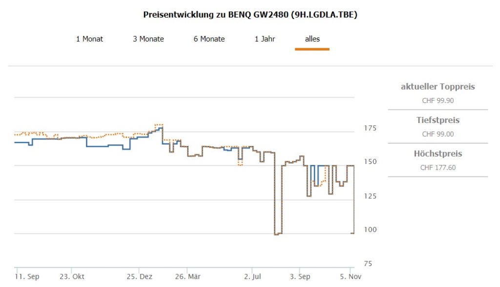 Zweitbester Preis in der Schweiz beträgt CHF 149.80. Man konnte den Monitor bereits einmal mit diesem Trick für den gleichen Preis erwerben.