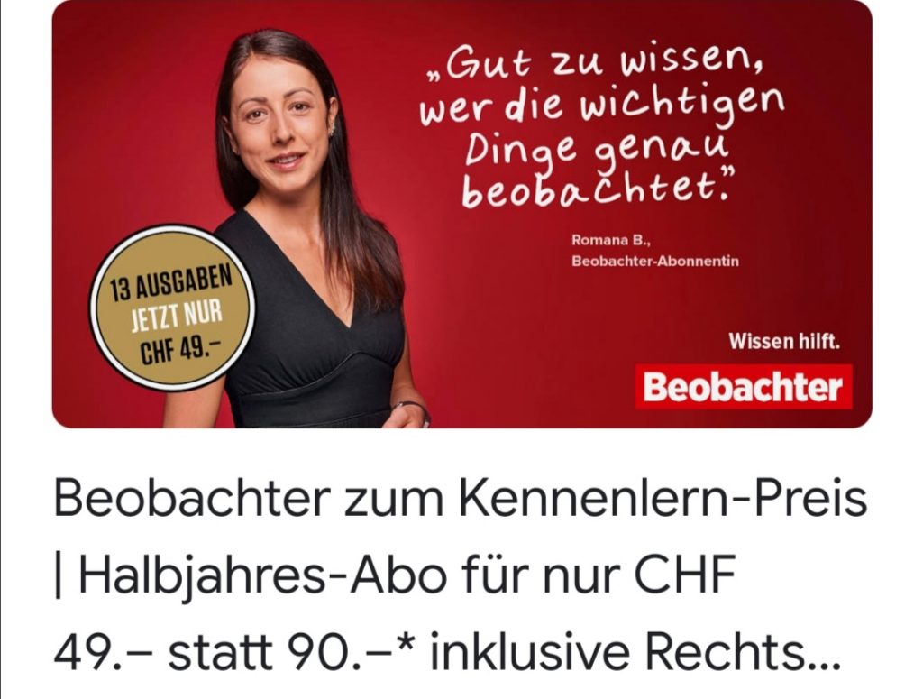 Angebot leider abgelaufen! Jeden Tag findet die Deal-Community neue Angebote. Sehen Sie sich jetzt die neuen Aktionen an... Zu den aktuellen Deals Verschiedenes AbgelaufenBeobachter Kennenlernabo Geschrieben von Checker vor 4 Jahren Verschiedenes 28. Juli 2021 6 4 Zum Deal Abgelaufen 50 % Rabatt auf diese tolle Zeitschrift inkl. Rechtsberatung. Die besten Deals von heute anzeigen Checker 3,435 Vollständiges Profil anzeigen