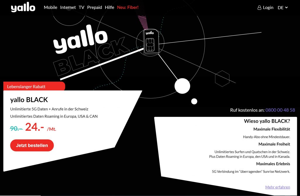 - yallo Swiss Flat 5G (Sunrise) für CHF 19.-