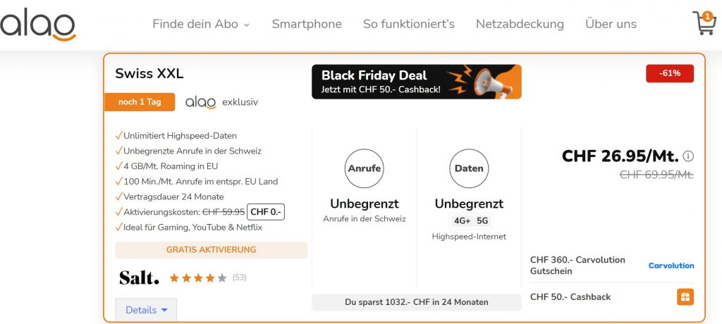 Es fallen noch Aktivierungsgebühren von CHF 19.95 an.