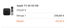 Derzeit gibt es beim Kauf eines Apple TVs über Apple Deutschland eine 50€ Guthabenkarte (welche auch für weitere Einkäufe benutzt werden kann).