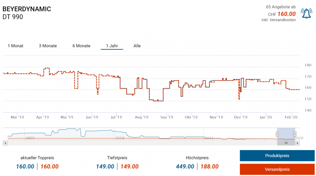 Bei Amazon erhält man den High-End Kofhörer beyerdynamic DT 990 Edition 32 Ohm Over-Ear-Stereo mit offener Bauweise, kabelgebunden gerade für umgerechnet CHF 119.- inklusive Versand und Verzollung. In der Schweiz kostet das Teil ab CHF 160.-