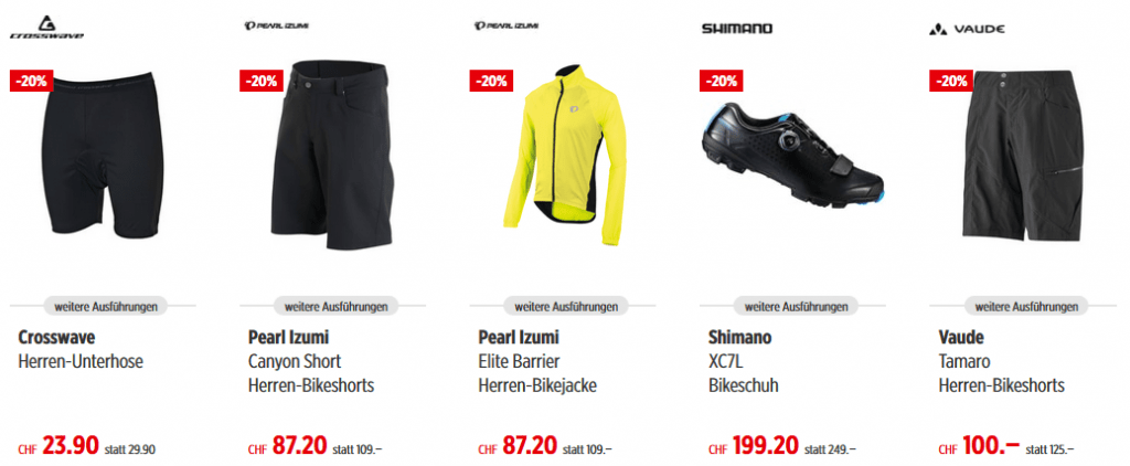 Bei Bike World online und in den Filialen hat der Sale begonnen, schöne Rabatte auf Velos (bis 03.09.). Zusätzlich gibt es bis zum 10.09. 20% auf Bekleidung und Schuhe!