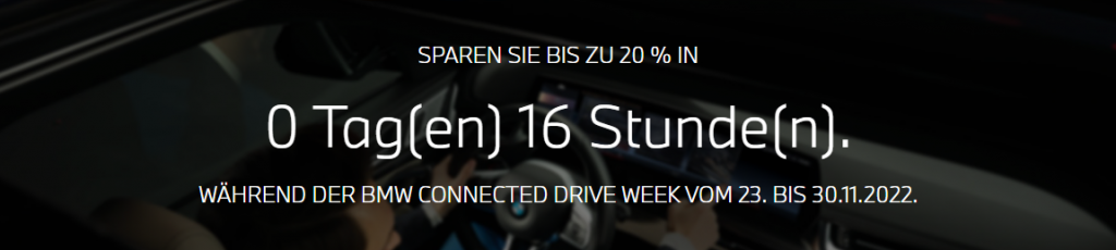 Vom 23. bis 30.11.2022 findet die BMW ConnectedDrive Week statt. Im BMW ConnectedDrive Store hast du die Möglichkeit, deinen BMW mit digitalen Diensten und Extra-Services auszustatten oder diese zu verlängern.