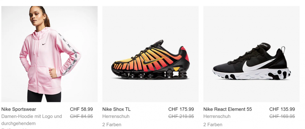 Lohnt sich nicht, wenn man möglichst günstige Artikel kaufen möchte sondern nur für all jene, die nicht die alltäglichen Nike Produkte haben möchten, die man in den normalen Sportläden wie etwa Ochsner Sport erhält.