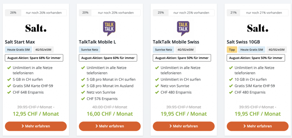 - SIM Karte: 39.95 CHF anstatt 59.95 CHF