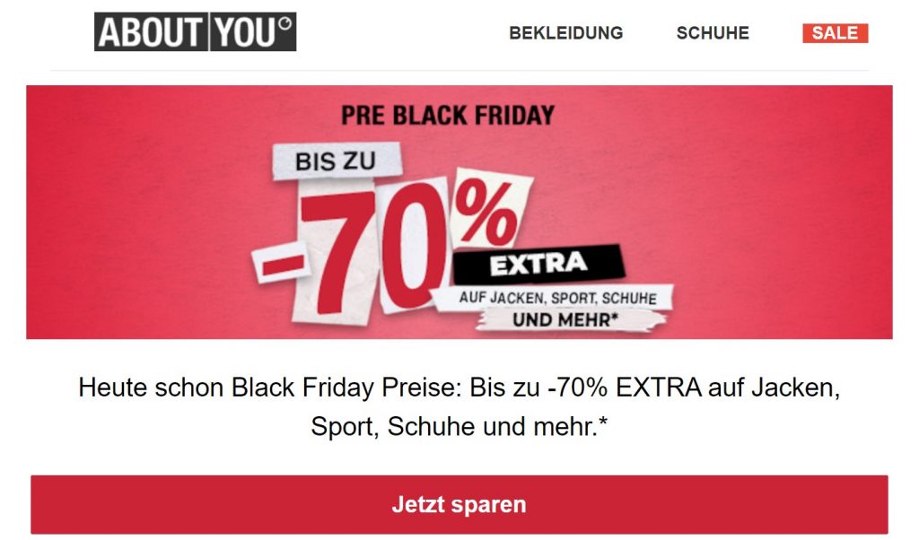 Bei About You gibt es bis kurz nach Mitternacht im Pre Black Friday, bis zu 70% Rabatt.