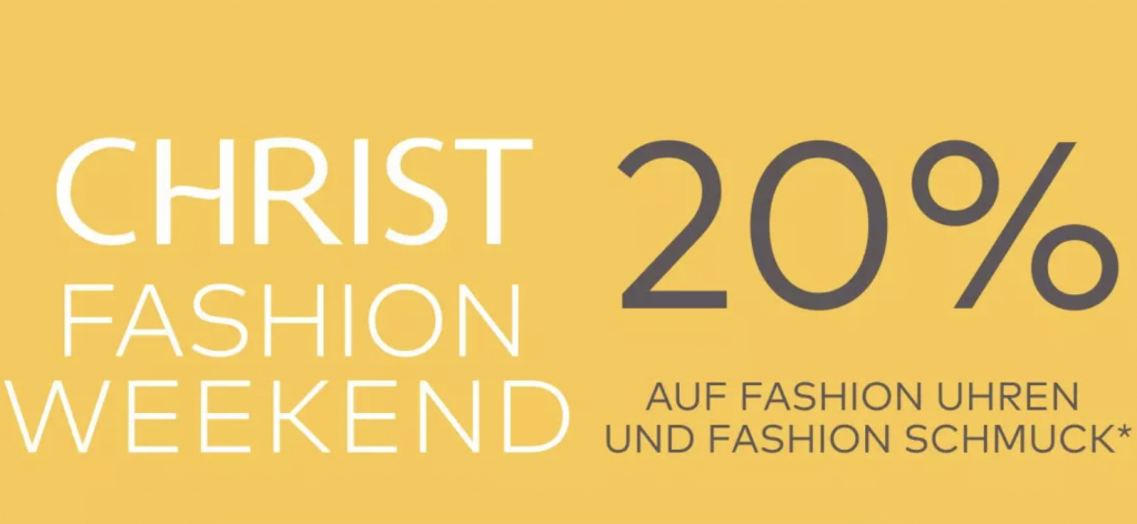 Bei CHRIST gibt es dieses Wochenende 20% Rabatt auf Fashion Uhren und Schmuck.