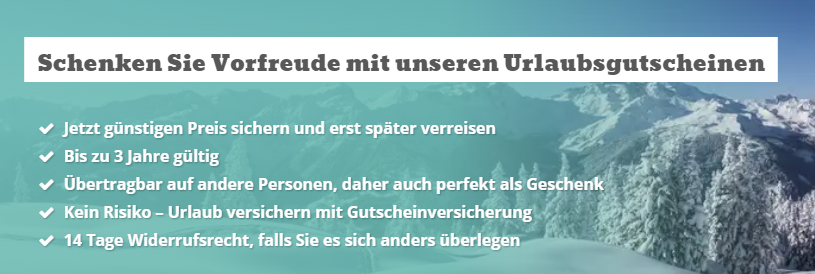 Die Urlaubsgutscheine sind ab dem Kaufdatum für 3 Jahre gültig und ihr könnt sie einfach direkt beim Hotel einlösen.