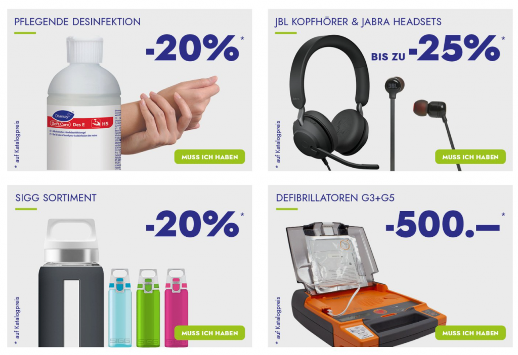 Wir starten das Jahr mit einem Trommelwirbel: Von parfümfreiem, pflegendem Desinfektionsmittel und antibakteriellem Büromaterial bis hin zu trendigen, nachhaltigen Thermosflaschen und JBL Kopfhörern für den perfekten Sound: Profitieren Sie vom 4.1. – 31.1.2021 exklusiv von unseren attraktiven Einführungsangeboten auf ausgewählte Produktneuheiten.