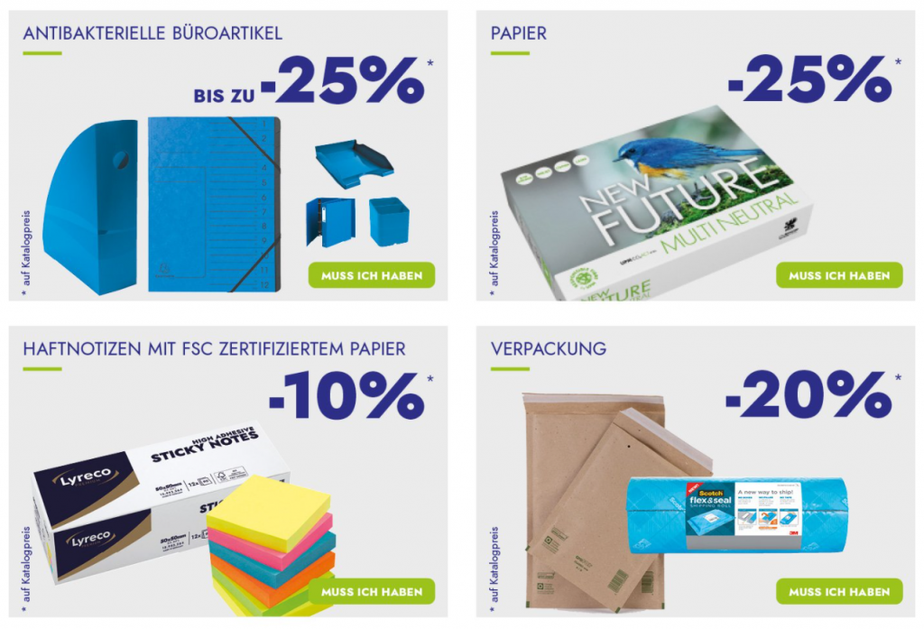 Bei Lyreco gibt’s bis Ende Januar bis zu 25% Rabatt auf Neuheiten. Der Rabatt gilt auf den Katalogpreis.