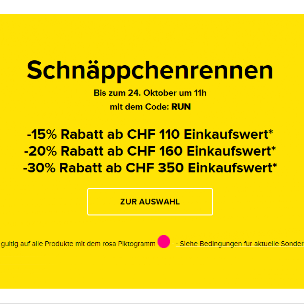 Um von der Aktion zu profitieren, musst du den Code „RUN“ angeben. Der Rabatt, den du bekommen kannst, hängt von deinem Bestellwert ab. Dabei bekommst du