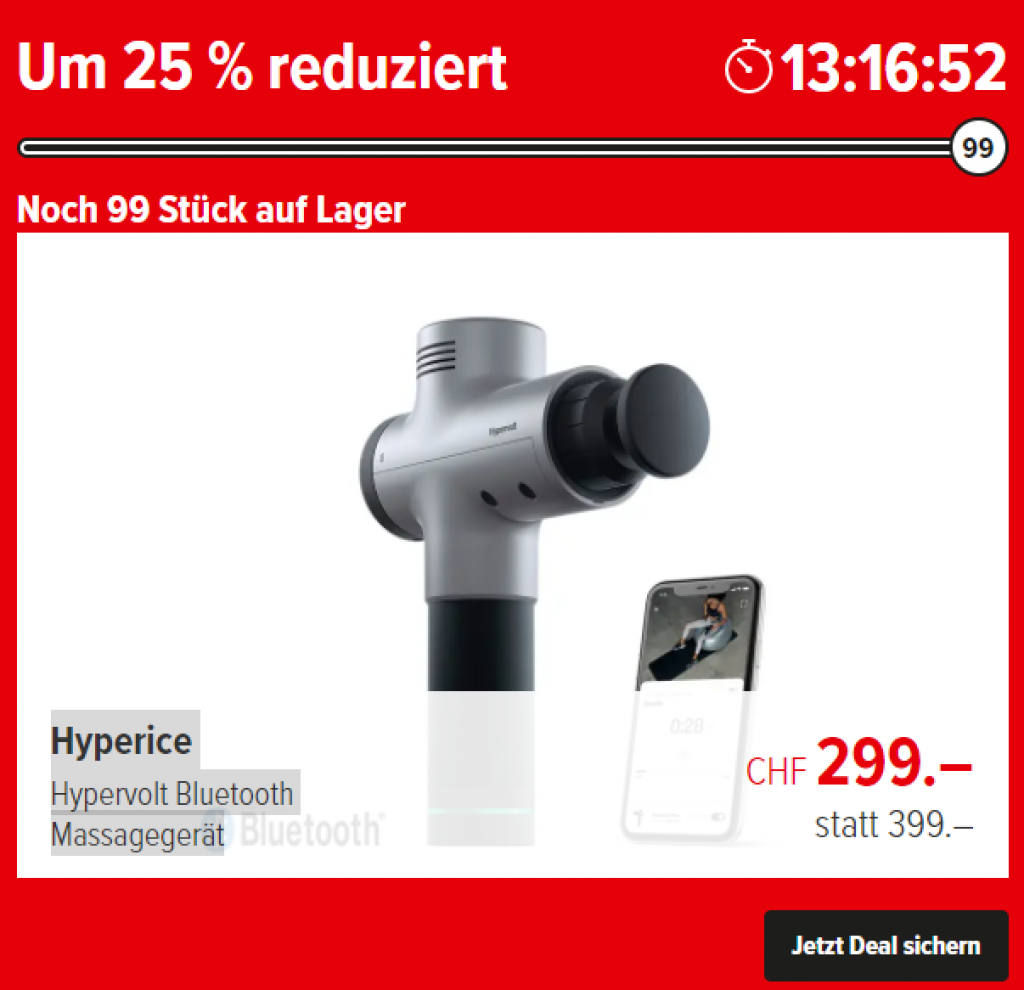 Oder das HYPERICE Hypervolt Bluetooth Massagegerät für CHF 299.- statt CHF 395.- (vgl. venova).