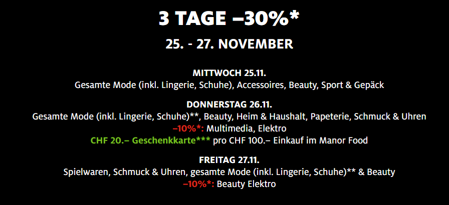 Bis zu 30% bei Manor mit der Manor Karte (nur heute!)