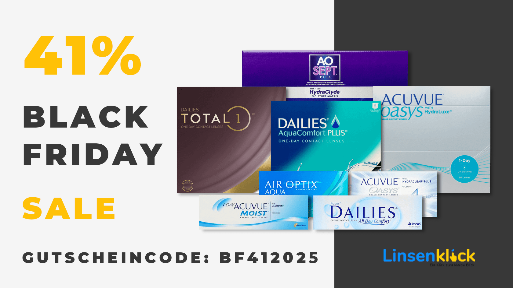 Entdecken Sie exklusive Black Friday Angebote und sparen Sie auf Kontaktlinsen, Pflegemittel und Augentropfen. Geniessen Sie klaren Durchblick!