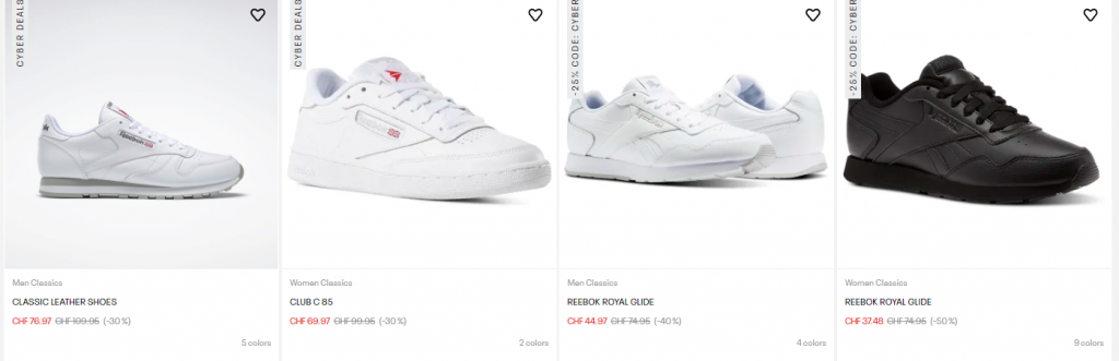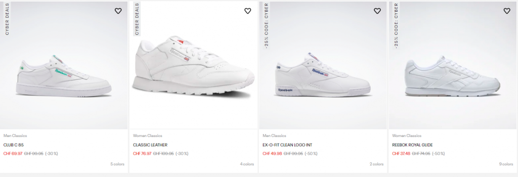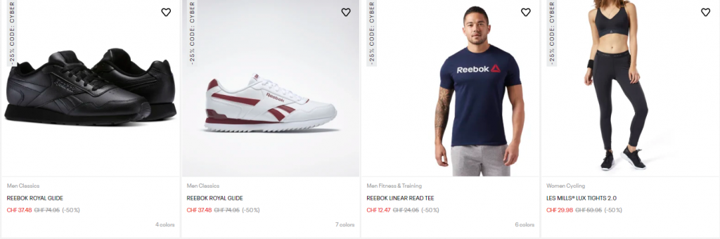 Bei Reebok gibt es nur noch heute satte Rabatte von bis zu 65%.