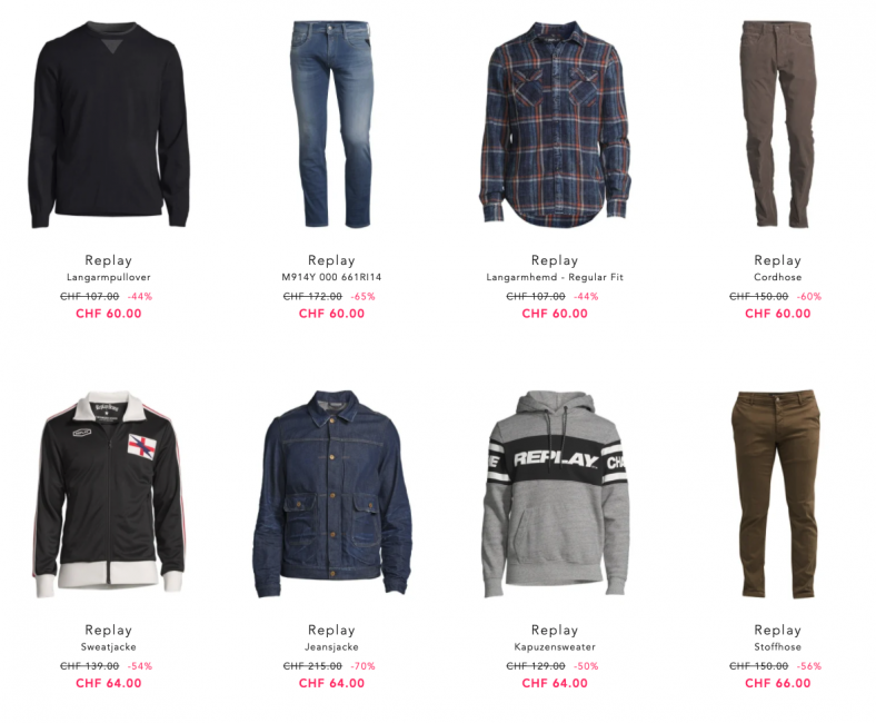 Auf Best Secret gibt es heute bis zu 70% Rabatt auf Replay Kleider und bis zu 55% auf Bugatti (exkl. Autos 😀 ).