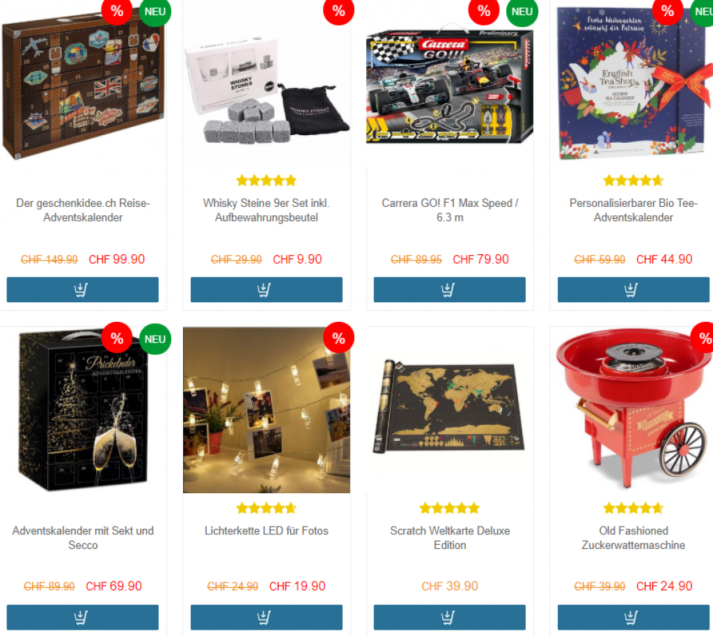 Bei Geschenkidee.ch gibt es momentan starke Black Friday Rabatte mit bis zu 75% Preisnachlass.