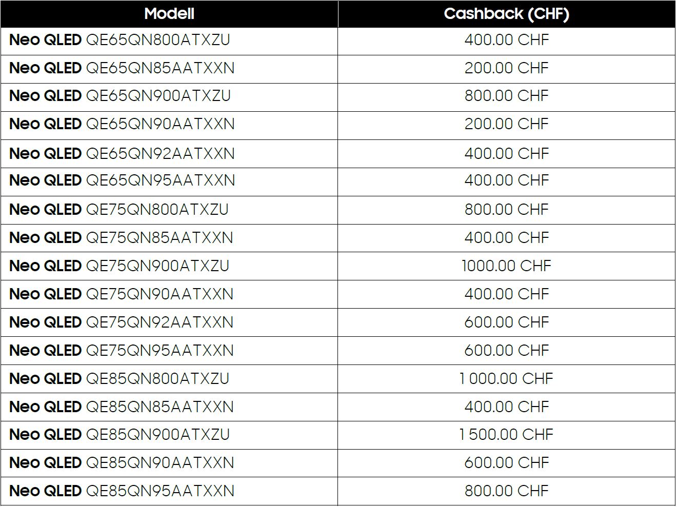 Aktuell gibt es auf ausgewählte Samsung NeoQled TV bis zu CHF 1’500.– Cashback. Damit ergeben sich einige neue Bestpreise für diese Geräte.