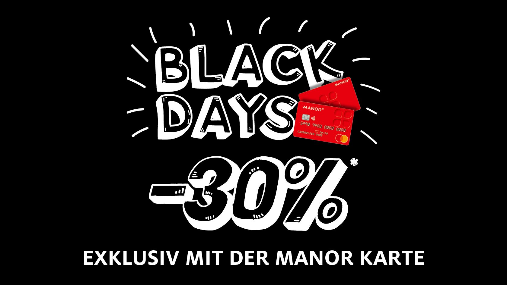 Die Black Days bei Manor sind wieder da! Profitieren Sie von einem grosszügigen Rabatt von -30%* mit Ihrer Manor Card!