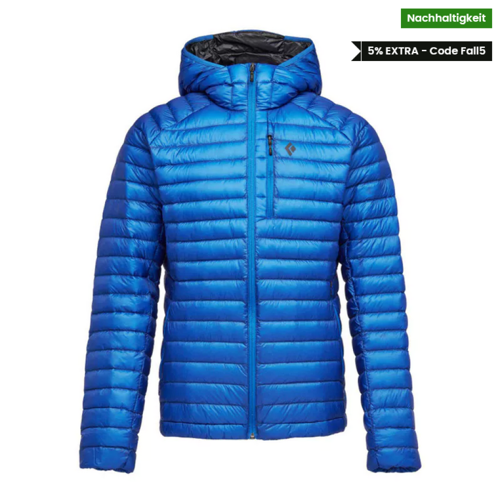 Hardloop verkauft die Black Diamond Approach Down Hoody - Daunenjacke in der Farbe Drifter Blue aktuell mit 40% Rabatt 209.96 CHF anstelle von 350.- CHF. Es sind noch die Grössen M sowie L verfügbar.