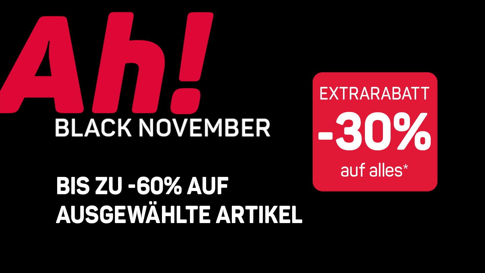 Black November bei Ackermann: 30% Rabatt auf alles*! Nur vom 16.11 - 30.11. Schnell zugreifen, shoppen und sparen!