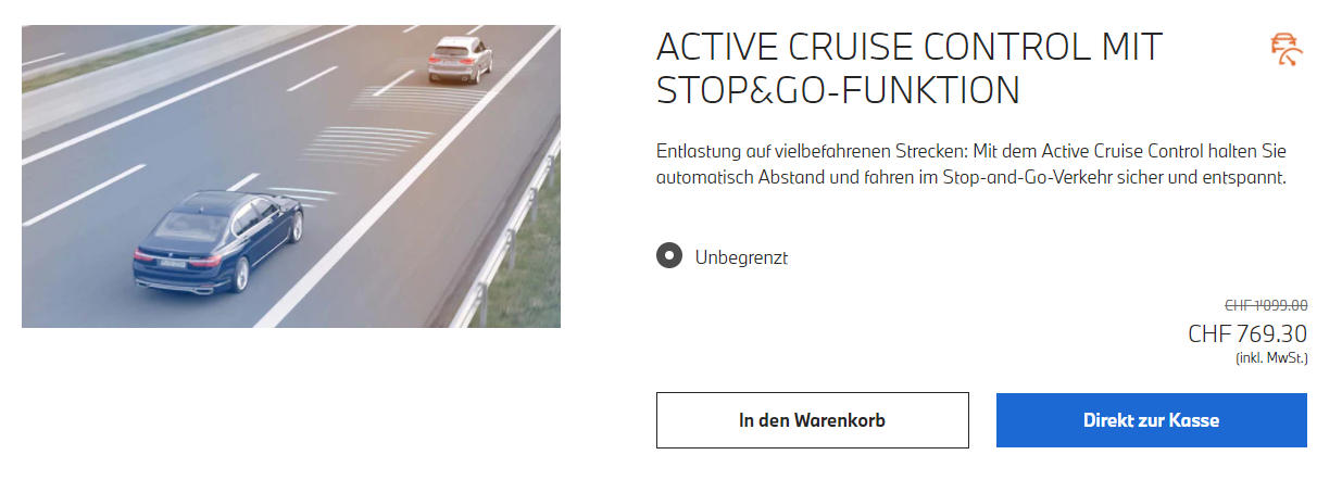 Wichtiges Beispiel: Active Cruise Control (automatische Distanzregelung) mit Stop & Go Funktion für CHF 769.30 anstatt CHF 1099.-