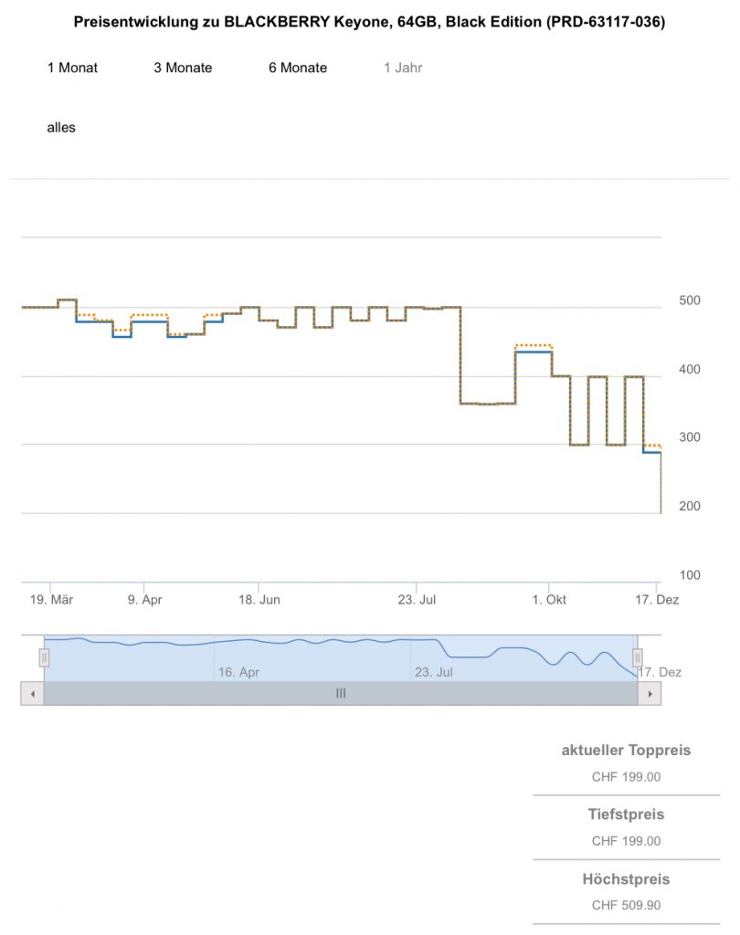 Bei digitec gibt es aktuell das BLACKBERRY Keyone, 64GB, Black Edition für 199.- CHF.