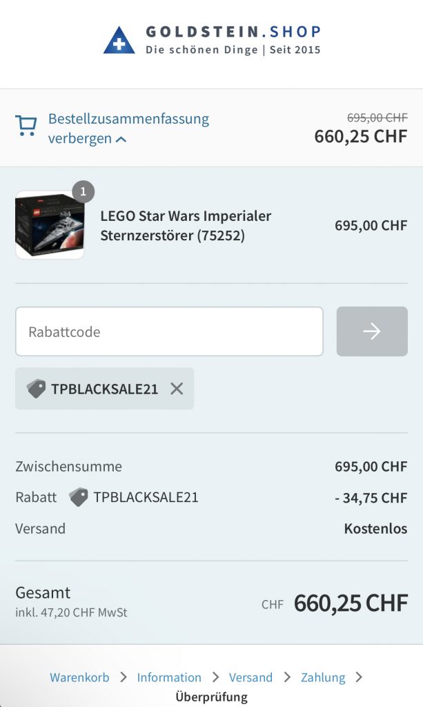 Habe gerade einige Blacksale Angebote im Goldstein Shop entdeckt. Jeweils zusätzlichen mit 5% Rabatt über Toppreise.ch (Code TPBLACKSALE21) gibt es aktuell: