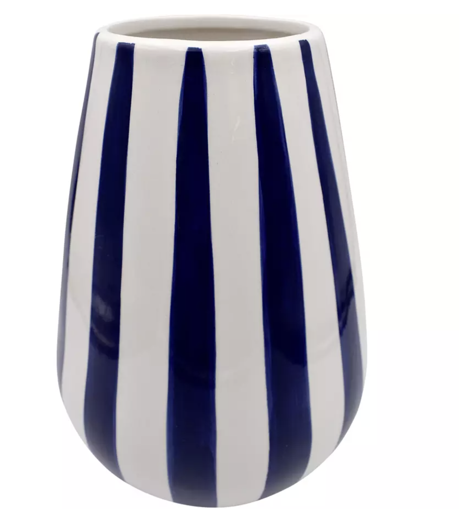 Bei Livique ist Blau-Weiss gestreifte Vase ‚Urban‘ für 32.40 CHF zu kaufen. Dieser Artikel lässt sich leider schlecht vergleichen, da sich ähnliche Produkte von der Form her unterscheiden. Das ähnlichste Produkt kostet bei H&M 39.- CHF