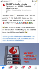 Bitte ergänzt noch folgendes. Es hat Diesel, Bleifrei 95 und Bio Diesel für 1.49 Fr.