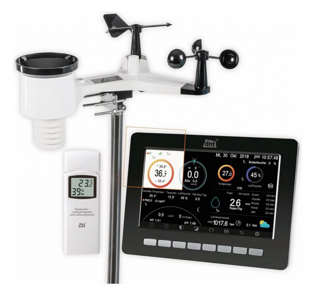 BLICK TAGESDEAL - dnt Wetterstation WeatherScreen PRO WiFi-Wetterstation mit Display, Raumklimasensor und Funk-Solar-Kombisensor