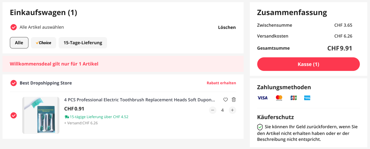 4 x 4 Stück = 16 Stück für CHF 9.91