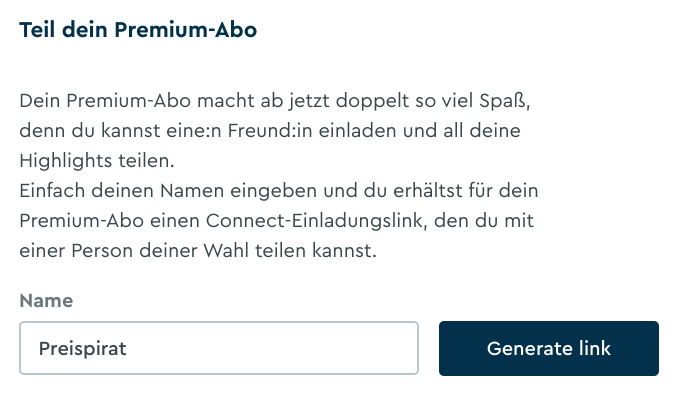 Das Beste ist, dass Du Dein Premium Abo noch mit einer Person teilen kannst: