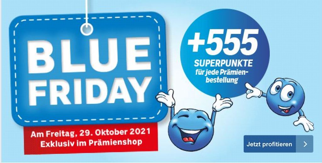 Heute lohnt sich ein Besuch im Prämienshop etwas mehr als sonst – auf jede Online-Prämienbestellung erhalten Sie während des Blue Friday ganze +555 Superpunkte extra*!