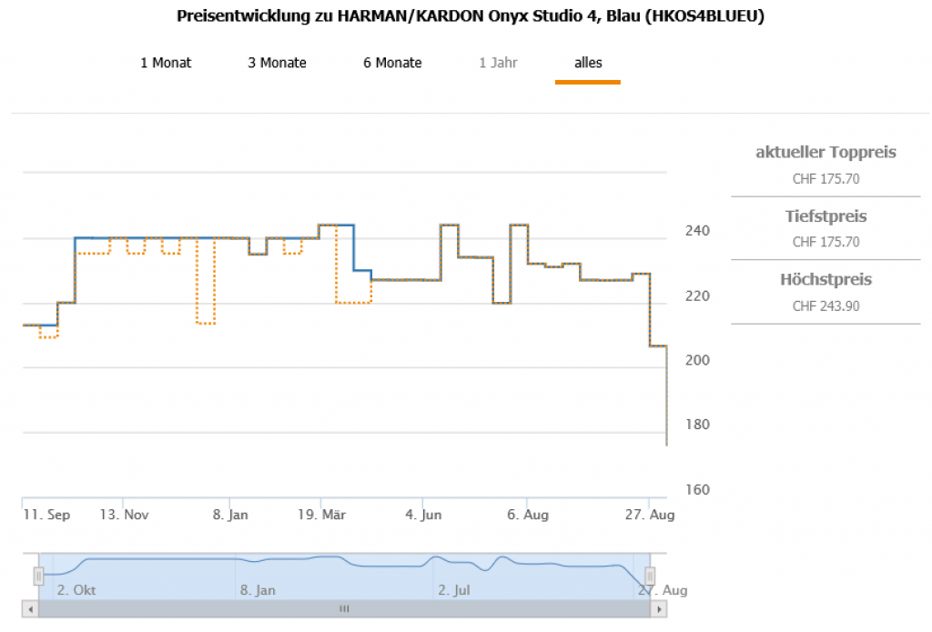 Gemäss toppreise gab es diesen bislang nie günstiger als für 206.60 CHF was zugleich aktuell auch der zweitbeste Preis ist. Best price in Schwarz bei 181.- CHF und in Weiss bei 179.- CHF.
