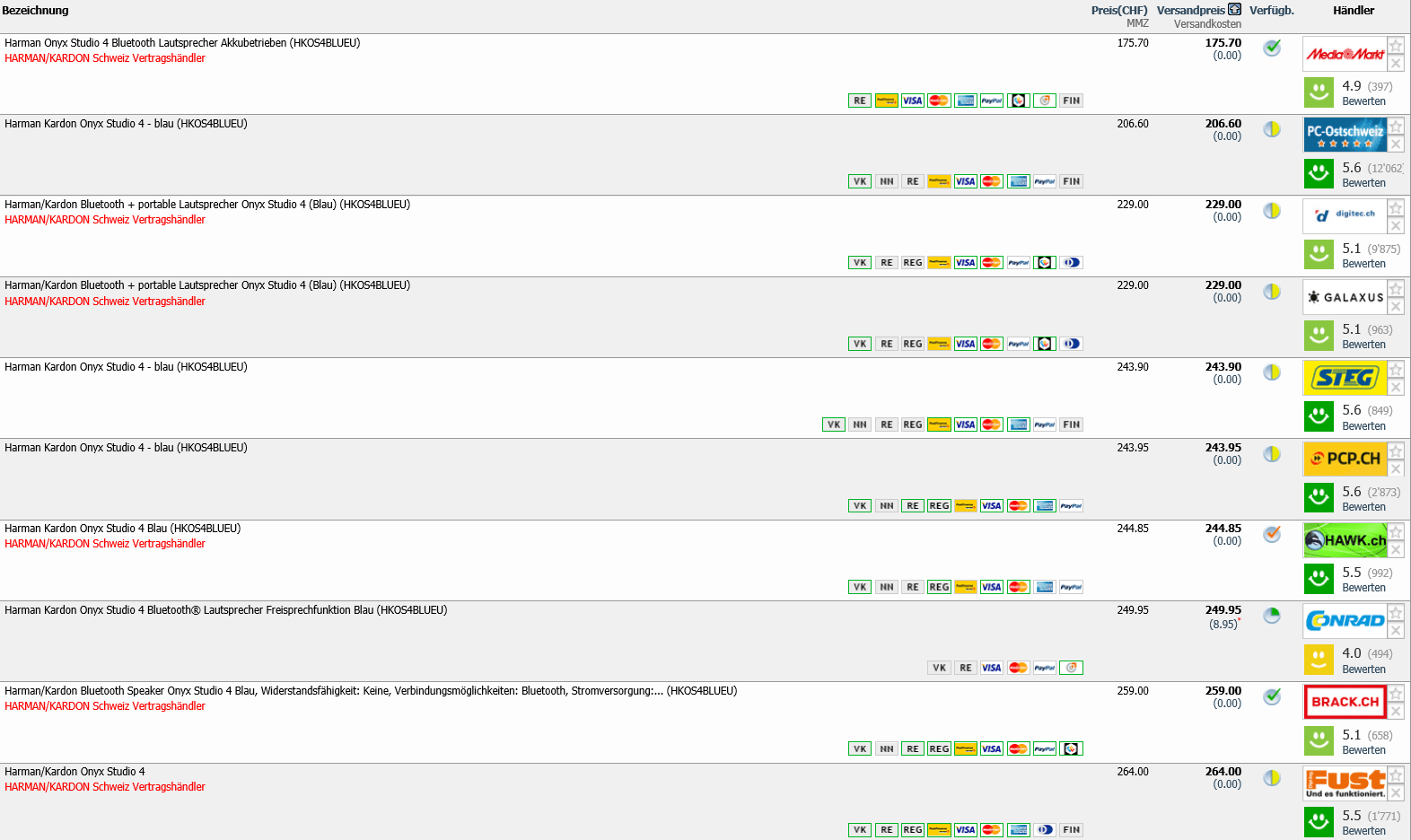 Bei MediaMarkt bekommt ihr gerade den Bluetooh Lautsprecher HARMAN/KARDON Onyx Studio 4 in Blau für 175.70 CHF.