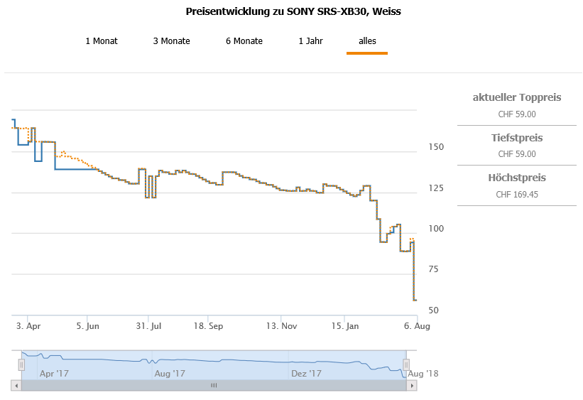 Zweitbester Preis und zeitgleich best price bislang sind 62.50 CHF (über alle Farben).