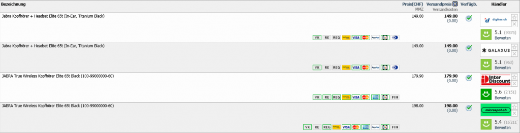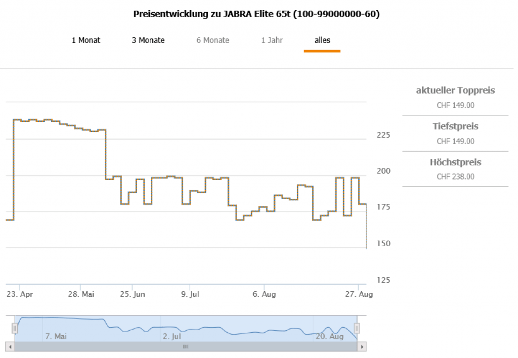 Gemäss toppreise gab es die Kopfhörer bislang nie günstiger als für 169.- CHF, der zweitbeste Preis liegt aktuell bei 179.90 CHF.