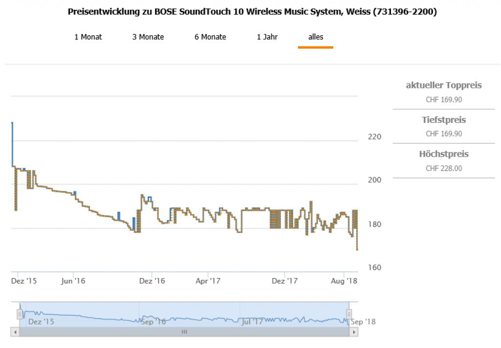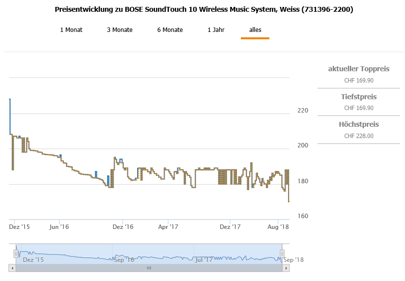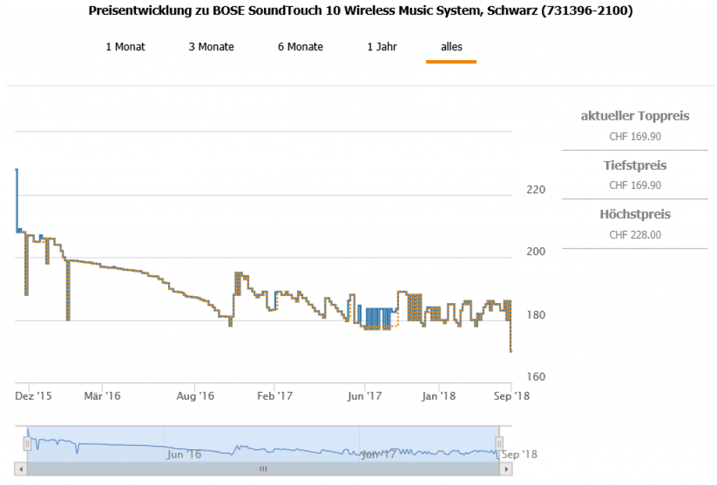 Gemäss toppreise gab es das System bislang nie günstiger als für 175.95 CHF, der zweitbeste Preis liegt aktuell bei 186.- CHF.