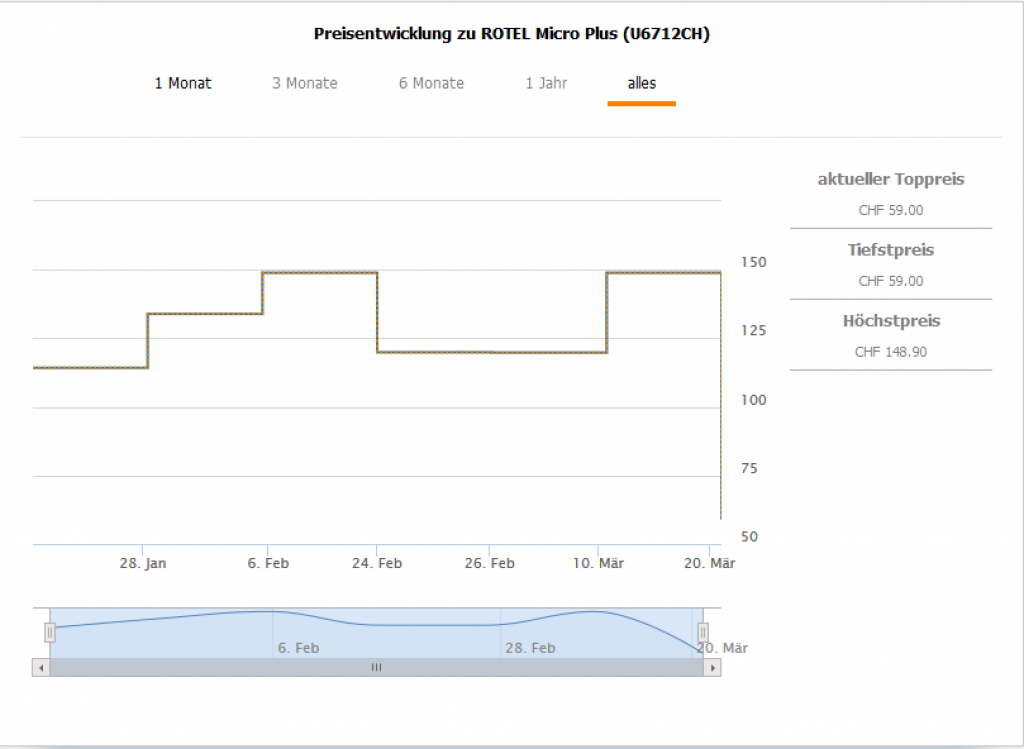 Bei Brack.ch gibt es den Bodenstaubsauger Microplus U6712CH von Rotel für CHF 59.-. Der zweitbeste Preis beträgt CHF 65.85. Bestpreis bisher CHF 114.25.