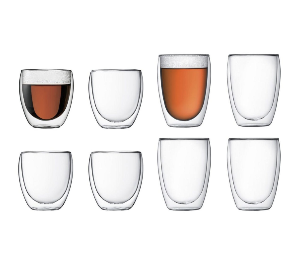 Geniesst eure Lieblingsgetränke mit dem 8-teiligen PAVINA-Doppelwandglas-Set von Bodum. Die mundgeblasenen Gläser aus hitzebeständigem Borosilikatglas halten heisse Getränke warm und kalte kühl, ganz ohne Kondenswasser. Sie sind spülmaschinenfest, Mikrowellen- und backofengeeignet (bis 180 °C).