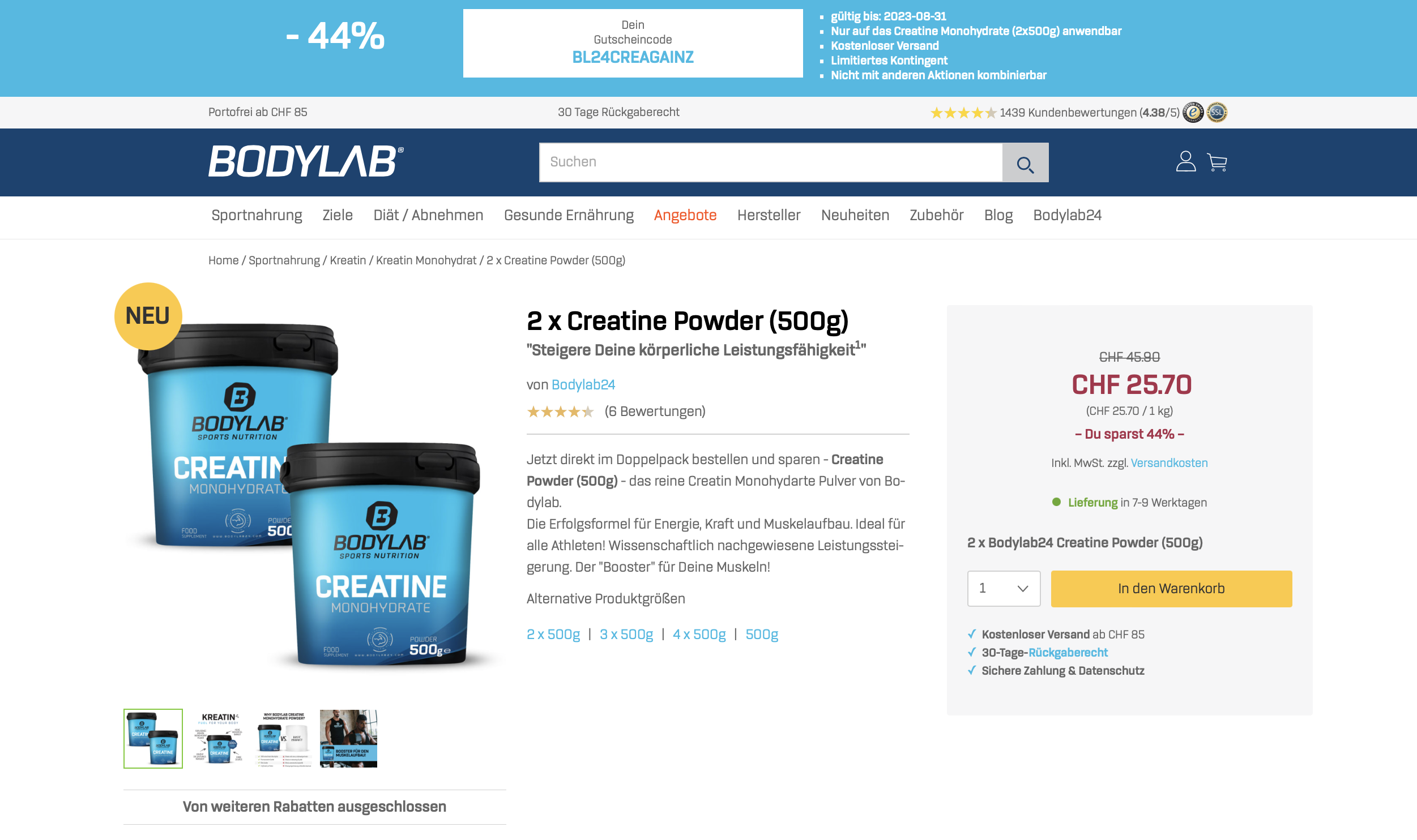 Der Gutschein BL24CREAGAINZ scheint wieder für das Creatine bei Bodylab zu funktionieren.
