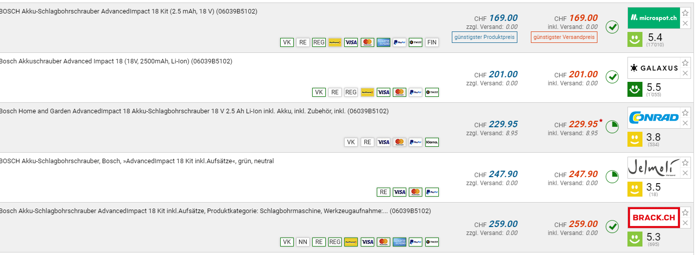 - BOSCH Akku-Schlagbohrschrauber AdvancedImpact 18 Kit zum BestPrice von 169.-, Galaxus ist mitgezogen und Aktuell auf 201.-