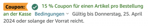 Um auf den Preis zu kommen, müsst Ihr vorher den 15% Coupon aktivieren: