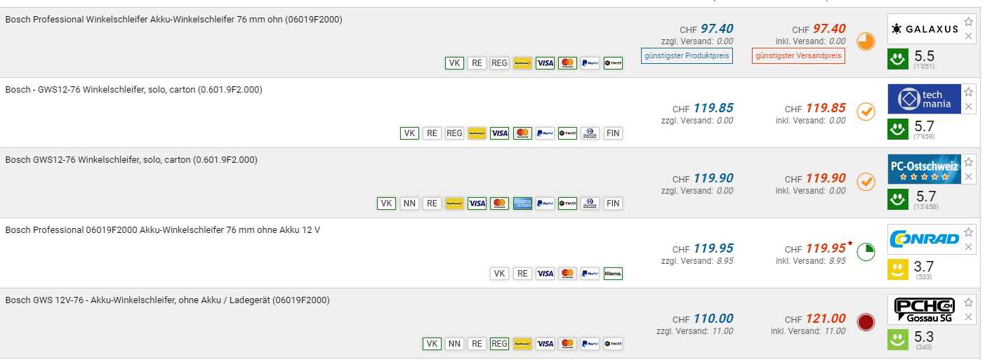 Bei galaxus gibt es den Bosch Professional Akku-Winkelschleifer für den neuen Bestpreis von CHF 97.40. Der vorherige Bestpreis war CHF 113.60. Der zweitbeste Preis beträgt CHF 119.85.