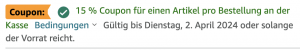 Um auf den Preis zu kommen, müsst ihr zunächst den 15% Coupon anklicken: