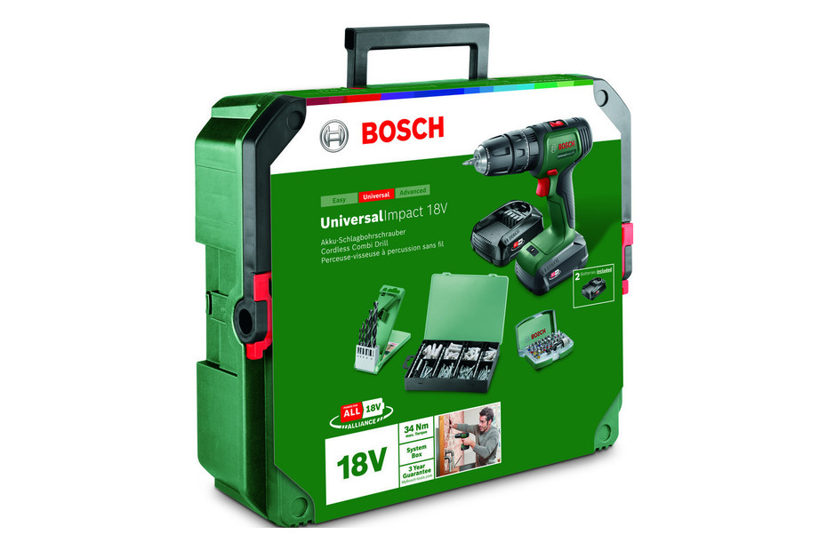 Bosch Schlagbohrschrauber UniversalImpact 18V + 210-teiliges Zubehörset bei Jumbo