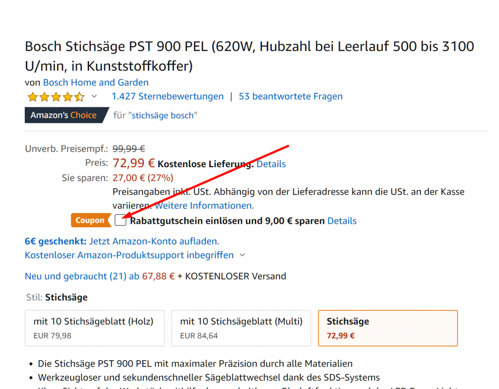 Dafür auf der Produktseite den 9 EUR Coupon aktivieren.
