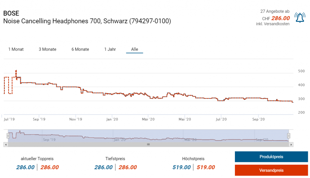 Bei amazon.de gibts derzeit die Noise Cancelling Kopfhörer von Bose, dem 700, zum Aktionspreis von 255 Franken. Laut toppreise beträgt der Vergleichspreis für dieses Modell 286 Franken.